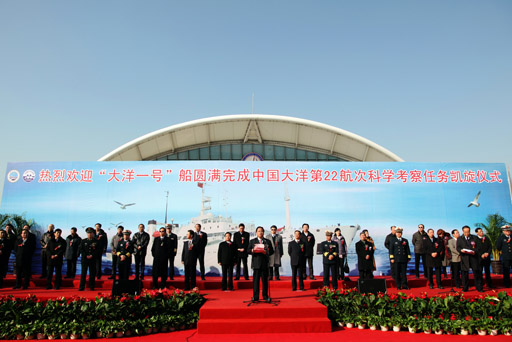 “大洋一號”船第22航次科考任務凱旋儀式現場