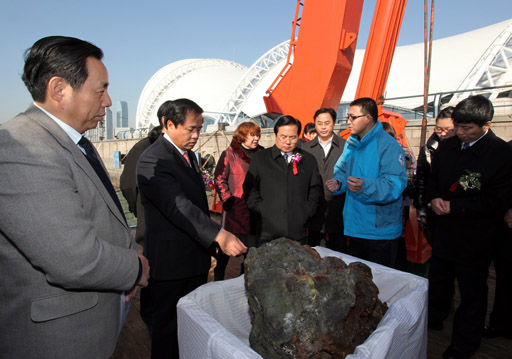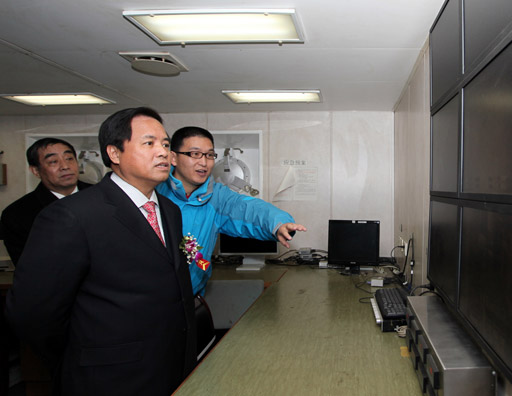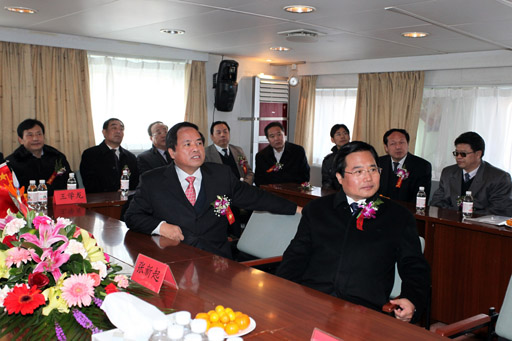 歡迎儀式后國家海洋局黨組書記、局長劉賜貴等參觀“大洋一號”船及樣品