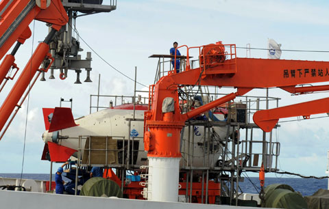 有關專家在對回收上來的蛟龍號進行維護和檢修
