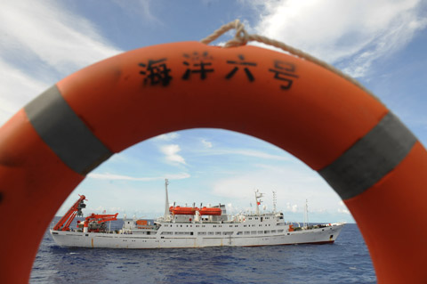 6,蛟龍號母船“向陽紅9號”船和“海洋六號”護衛船并肩停泊在太平洋上。