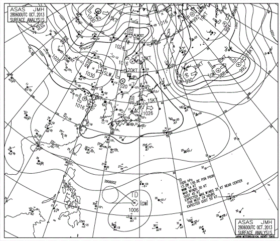 情況很快生變。10月27日,根據最新預報,熱帶風暴將于10月31日到達巴士海峽,進入南海,比之前的預報快,已經快速移到“海洋六號”前面。同時,隨著熱帶風暴不斷加強,大風范圍不斷擴大,2.5米以上的大浪范圍也不斷擴大,給航行造成影響。