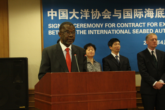 合同簽訂儀式上,中國大洋協(xié)會秘書長金建才和國際海底管理局秘書長涅·艾洛提·奧敦通分別代表雙方在合同文本上簽字,外交部、國土資源部、國家海洋局等有關(guān)部門負責人出席了活動。此前,在日本經(jīng)濟產(chǎn)業(yè)省副大臣松島綠見證下,日本已與國際海底管理局簽訂了富鈷結(jié)殼勘探合同。俄羅斯和巴西也已向國際海底管理局提出了富鈷結(jié)殼勘探工作計劃申請。截止目前,國際海底管理局共收到26份礦區(qū)申請,其中已簽訂勘探合同或獲得核準的有19份。