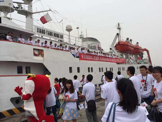 今日,“向陽紅09”船在江蘇江陰搭載“蛟龍”號載人潛水器,前往西北太平洋執行2014—2015年“蛟龍”號載人潛水器試驗性應用航次任務,這是“蛟龍”號的第二次試驗應用航次,總計約160天。