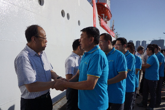 國家海洋局副局長、中國大洋協會理事長王飛為參航人員送船(攝影/中國網 馮竹)