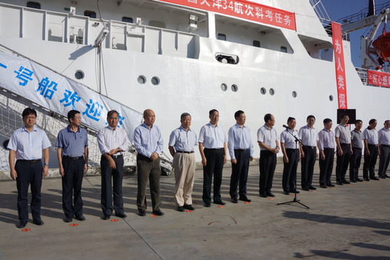 中國網11月16日訊(記者 馮竹)執行我大洋科考第34航次任務的“大洋一號”船今日從三亞起航。國家海洋局副局長、中國大洋協會理事長王飛以及中國大洋協會辦公室、國家海洋局第二海洋研究所、國家海洋局北海分局等參航單位的代表為大洋34航次全體科考隊員送行。