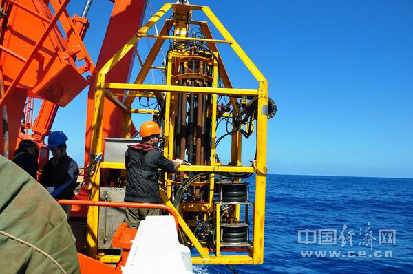 我國研發的“進取者”深海底中深孔巖心鉆機能到達4000米海底 圖為進入海底地層以下20米取樣(攝 中國經濟網/鮑曉倩)