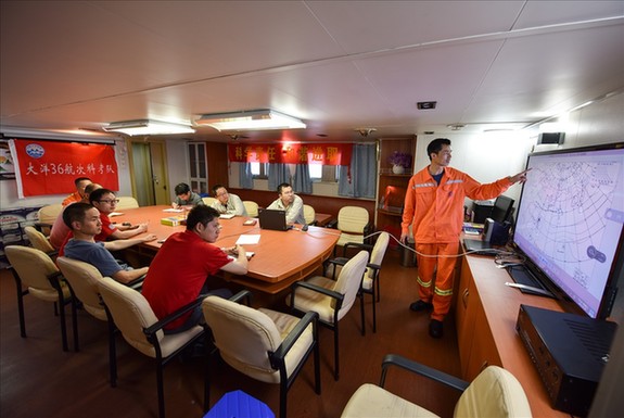 據(jù)藍(lán)明華介紹,2014年西太平洋海域臺(tái)風(fēng)數(shù)量明顯偏少,據(jù)統(tǒng)計(jì)只有21個(gè),低于26個(gè)的年平均水平,但今年的臺(tái)風(fēng)來(lái)勢(shì)有點(diǎn)“兇猛”,需要提前做好應(yīng)變措施。“要說(shuō)避風(fēng),太平洋和近海有很大的不同,在沿海作業(yè)時(shí),可以選擇臺(tái)風(fēng)移動(dòng)路徑以外的錨地避風(fēng),在離最近陸地海島超過(guò)1000公里的太平洋上作業(yè),在水深幾千米的海域是不可能拋錨避風(fēng)的,只能根據(jù)臺(tái)風(fēng)移動(dòng)的相反方向,到臺(tái)風(fēng)大風(fēng)半徑外滯航。”藍(lán)明華說(shuō)。