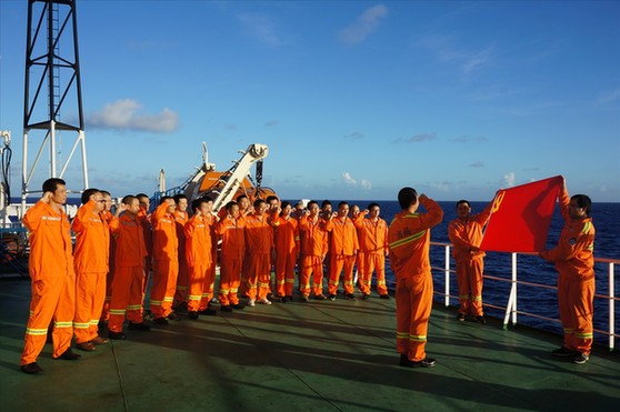 當地時間6月30日下午5時,為慶祝中國共產黨成立九十四周年,海洋六號舉辦了一次別開生面的紀念“七一”黨日活動。全體黨員匯集到甲板上,面對鮮紅的黨旗,莊嚴宣誓,為實現祖國海洋強國夢而努力奮斗!