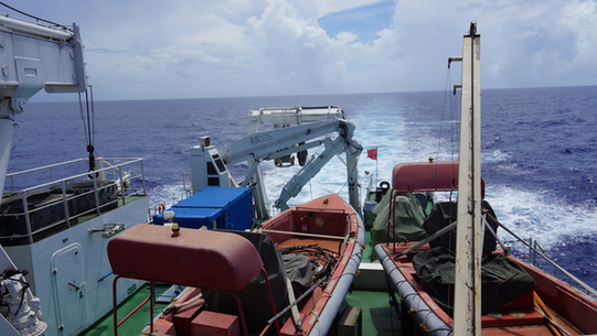 掛旗、起錨、收纜繩,這條滿載先進(jìn)海洋調(diào)查儀器的綜合科學(xué)考察船,在關(guān)島加滿柴油、淡水和蔬菜,緩緩駛出港灣,走向大海。
