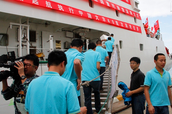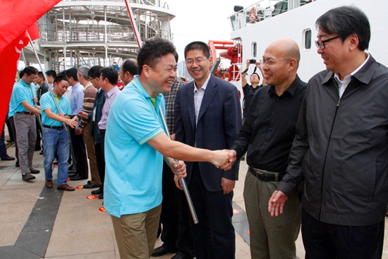 國家海洋局副局長、大洋協會理事長王飛,三亞市副市長李勁松,海洋二所所長、中國工程院院士李家彪,中國大洋協會辦公室主任劉峰,中國大洋協會辦公室副主任李波等為趕赴本航次西南印度洋段的全體科考隊員送行。