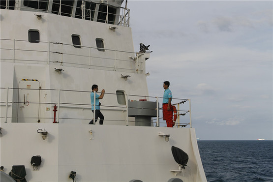 年紀(jì)較輕的科考隊員們都貼在宿舍的窗戶邊,希望收到些許信號,性子急的干脆跑到前甲板上,邊搜索信號,邊與其他人交流。來自海洋三所的微生物權(quán)威專家邵宗澤老師也湊進年輕人的隊伍里,急切地問道“你收到了哪個通信公司的信號?”獲得答案后又走到一邊,開始研究起手機信號的問題。幾番交流,還是沒有“搞定”手機信號,一臉沮喪地問記者,“我的手機到底是怎么回事呢?”