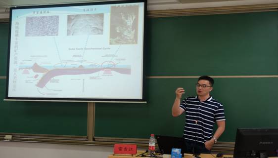 主講人雷吉江博士主要從事大洋熱液區(qū)元素地球化學(xué)循環(huán)和地質(zhì)微生物學(xué)作用方面的研究,曾先后參加7個(gè)航次的大洋海上調(diào)查。他用親身經(jīng)歷生動(dòng)形象地向?qū)W生講述了大洋科考和海上生活,并詳細(xì)解答了同學(xué)們關(guān)心的問題。來自人民大學(xué)多