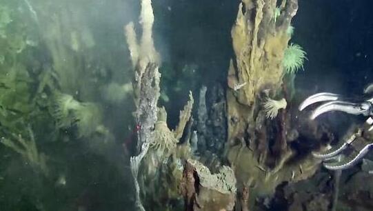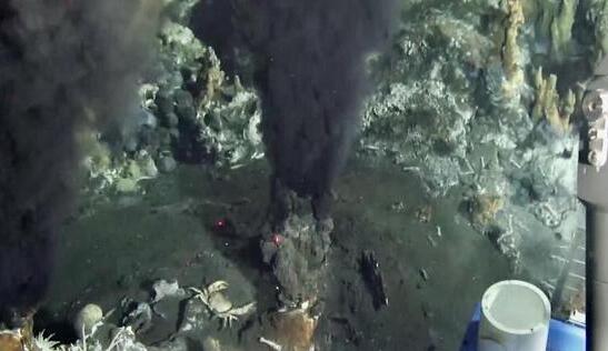 硫化物煙囪也稱“黑煙囪”,其成因是海水從地殼裂縫滲入地下,遇到熔巖被加熱,溶解了周圍巖層中的金、銀、銅、鋅、鉛等金屬后又從地下噴出。這些金屬經(jīng)化學反應,形成硫化物沉積在附近的海底,像“煙囪”一樣堆積起來。硫化物煙囪作為一種海底礦藏日益受到關注。