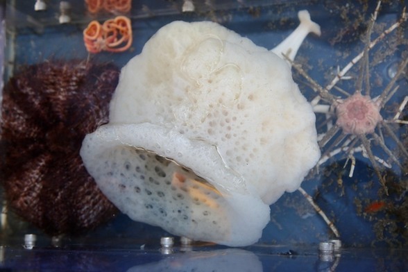 但是,蛟龍號在行至約430米深度時,突然發現了在珍貝海山頂部生長著許多的珊瑚、海膽和巨型底棲生物,一改之前海山陡峭的景象,一派生機盎然的景象。