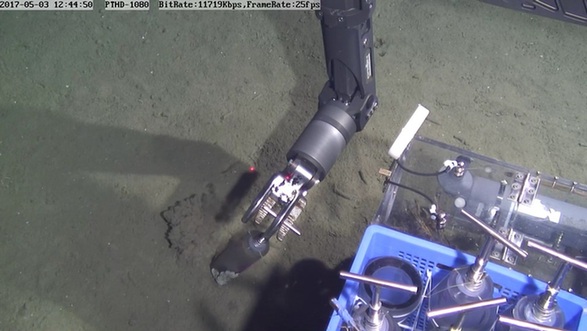 5月3日,蛟龍?zhí)栐谀虾|沙東南部調(diào)查區(qū)進行第二航段第5次下潛(總第138潛次),最大下潛深度2540米,采集了高精度測深側(cè)掃微地形調(diào)查數(shù)據(jù)和大量近底海水、沉積物和生物等樣品。
