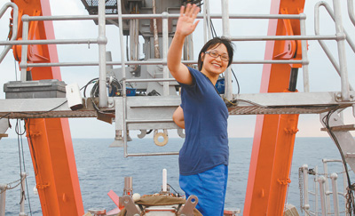 大眼睛、齊耳短發,戴著時尚的粗框眼鏡,身穿碎花上衣,一副典型的江南女子的嬌小身材。如果不是提前做了功課,真不敢相信這位美女科學家生于1969年,有個即將讀大四的兒子,更難想象她今年剛在海上“漂”了4個多月。