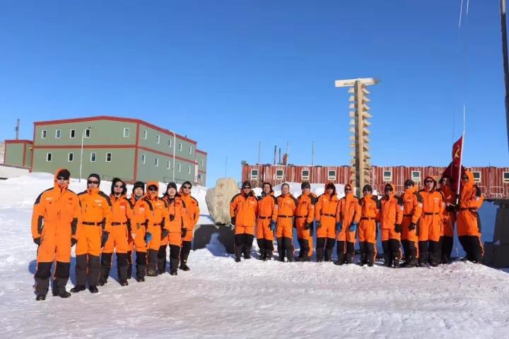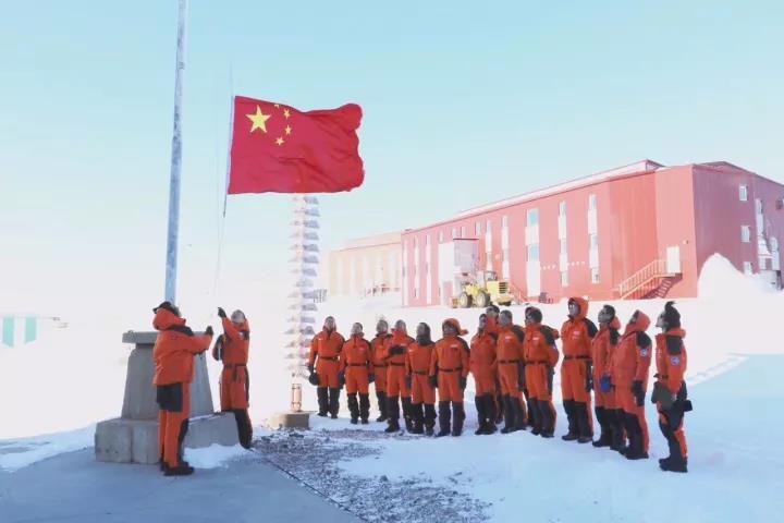 今天上午9點南極中山站陽光燦爛,19名越冬隊員在零下25度的刺骨寒風中舉行隆重的升旗儀式,慶祝中華人民共和國成立68周年!望著五星紅旗在南極冉冉升起,我們心中無比激動與自豪!衷心祝愿祖國更加繁榮昌盛!祖國人民生活幸福安康!也祝愿我國南極考察事業取得更大的輝煌成就!