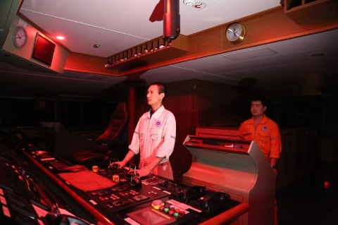 年輕的三副和水手都出生于1990年,同齡人搭配,十分默契。他們向記者耐心細致地介紹著駕駛臺上的各種航海儀器:動力定位、電子海圖、雷達、減搖水艙……