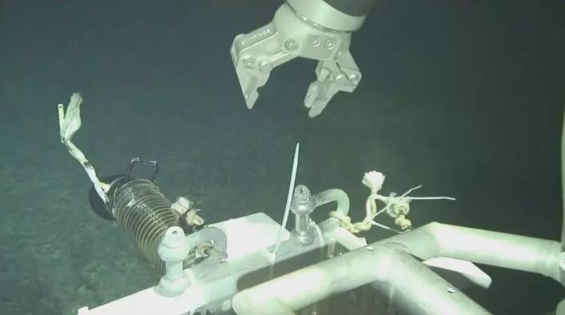 “海龍Ⅲ”在海底拍攝的機械手作業(yè)畫面。(上海交通大學(xué)“海龍Ⅲ”研發(fā)團隊提供)