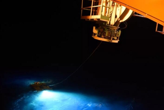 北京時間4月4日18時30分,“海龍Ⅲ”從正在執(zhí)行2018年綜合海試任務(wù)的“大洋一號”科考船入水,加掛浮球后開始下潛。
