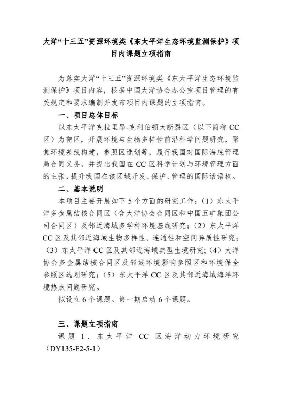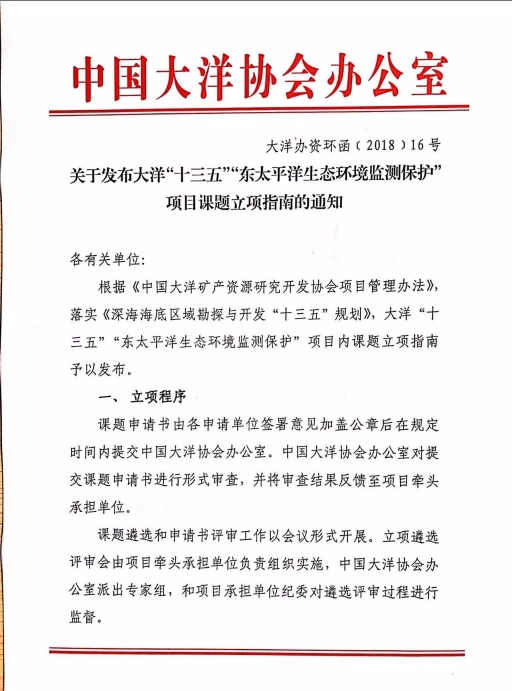 附件1:關于發布大洋“十三五”東太平洋生態環境監測保護項目課題立項指南的通知