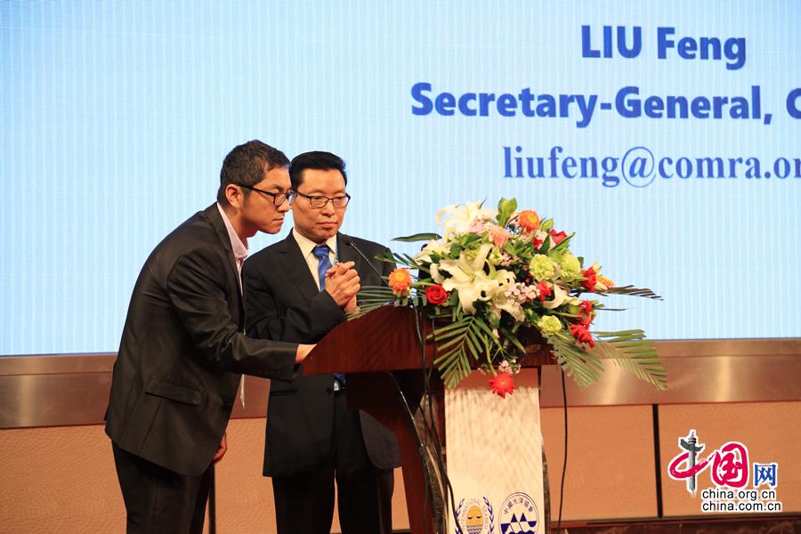 劉峰在西北太平洋三角區(qū)富鈷結(jié)殼區(qū)域環(huán)境管理計(jì)劃國(guó)際研討會(huì)現(xiàn)場(chǎng)做中國(guó)深海環(huán)境政策和實(shí)踐的報(bào)告