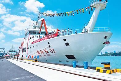 “向陽紅03”科考船為中國自主設計與建造、綜合觀測技術能力達到國際一流水平的科學考察船,具備海洋動力、地質與地球物理、生物生態、海洋化學等環境綜合科考能力,目前已安全航行6萬多海里,先后圓滿完成全球變化與海氣相互作用深海底質調查等科考任務,取得豐碩成果。(新華社)