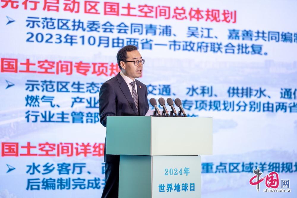 長三角生態(tài)綠色一體化發(fā)展示范區(qū)執(zhí)委會副主任、上海市發(fā)改委副主任張忠偉介紹了示范區(qū)規(guī)劃建設實踐。中國網(wǎng)記者鄭亮攝