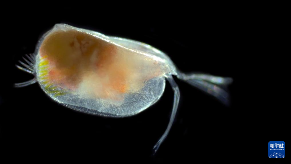 1月26日在阿蒙森海捕撈到的一種浮游動物,介形亞綱的海熒(顯微鏡照片)。